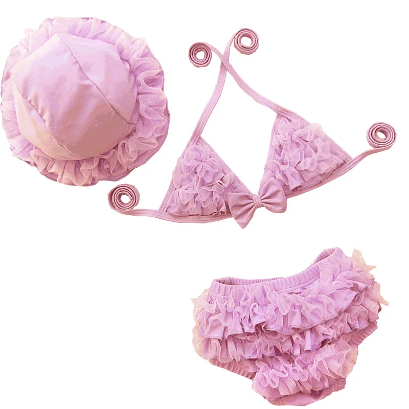 Promo 2020 Swimsuit Girls 3 Pieces Swimwear small Kids Ruffles Print with lace Swimwear Bathing Suit Biki